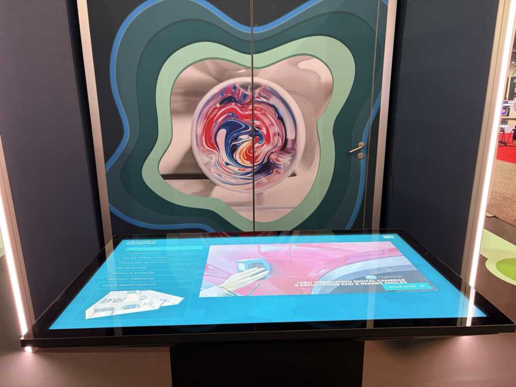 For larger audiences, an 8-foot-wide LED video wall was synchronized to a custom interactive tabletop and touchscreen – perfect for group demonstrations, company presentations and speaking events.