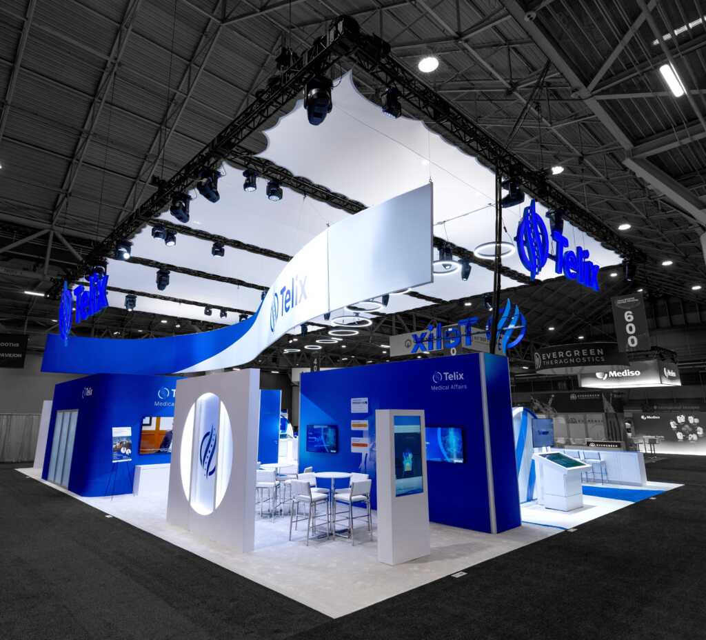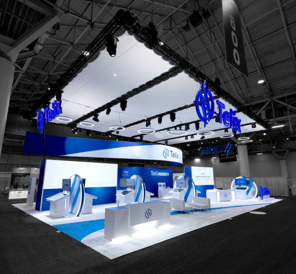 This 70' x 50' custom island booth is a digital-first, immersive environment featuring an LED video wall, large product demonstration screen, interactive product portal kiosks, a conference room, meeting spaces, bold illuminated branding and a future-ready design perfect for the brand's dynamic growth.