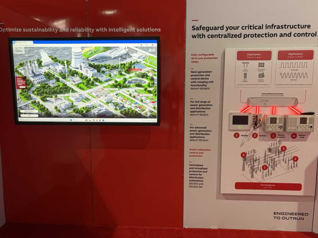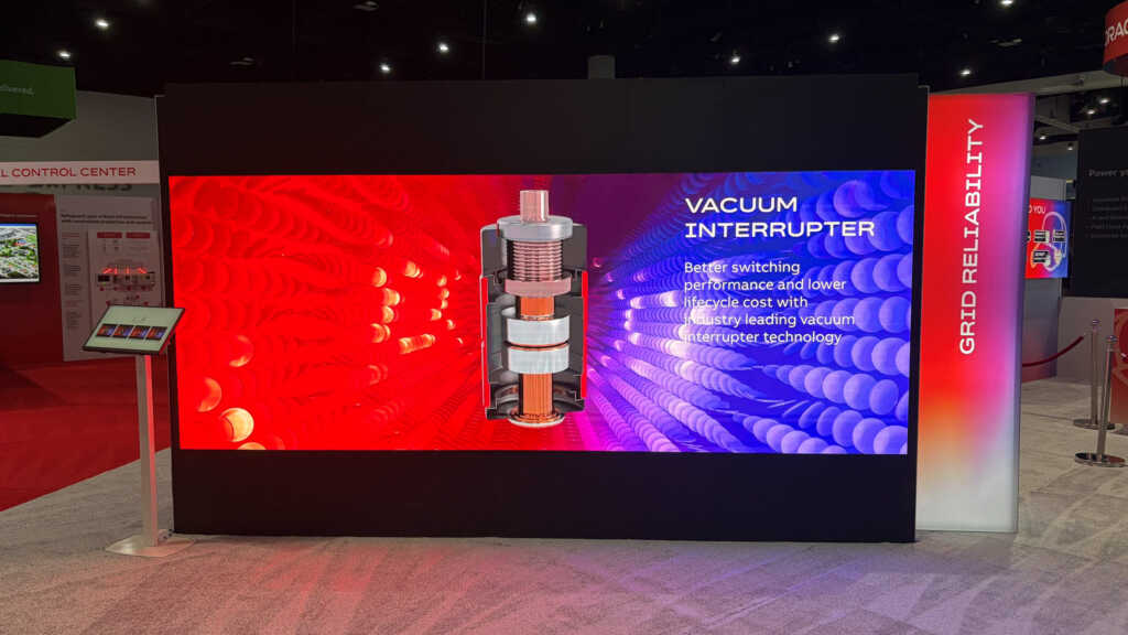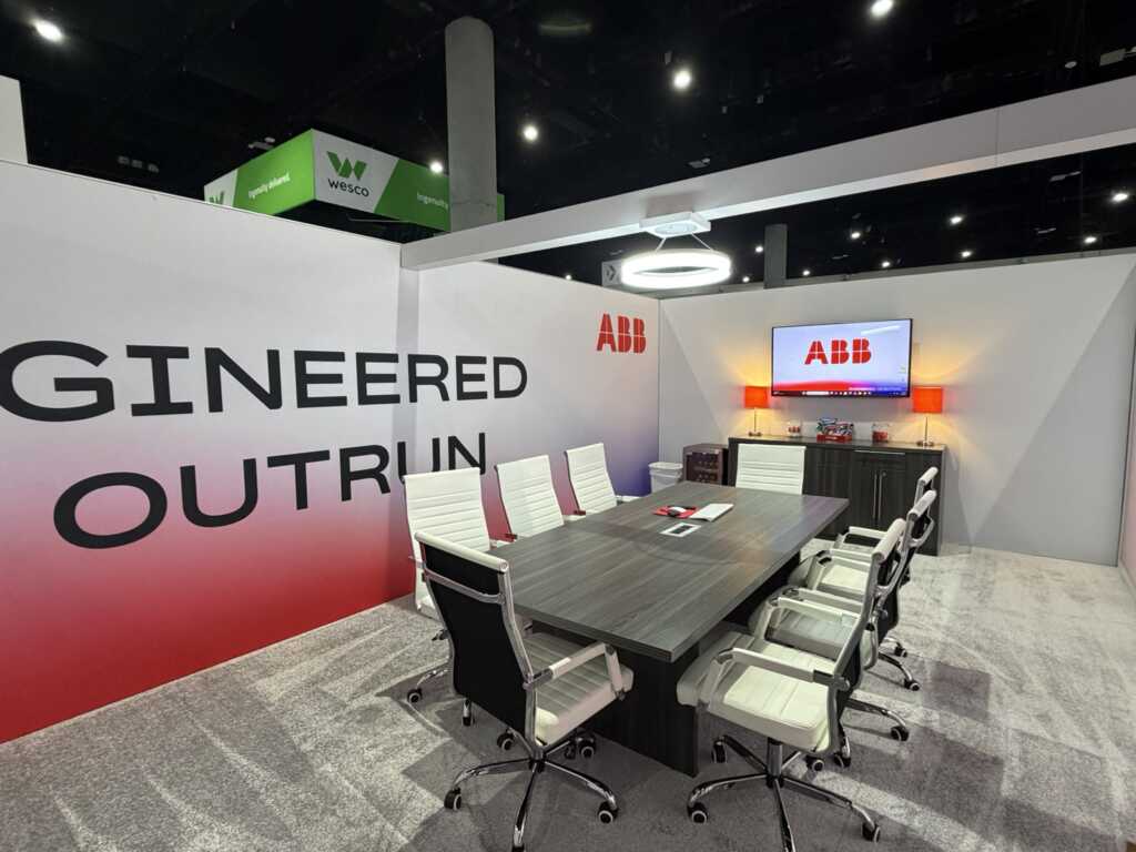 Hitachi Energy’s 50’ x 60’ island exhibit highlighted its hardware and software solutions to keep the grid more reliable, affordable and clean. An LED video wall with a seating area took center stage, while a grid distribution automation wall, A/V kiosks, product displays, conference rooms, and a hospitality area provided ample spaces for engagement.